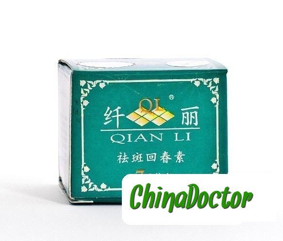 Крем для отбеливания кожи и выведения пигментных пятен Цень Ли (Qian Li) обладает отбеливающим и лечебным эффектом от веснушек, пигментных пятен, морщин и рубцов от прыщей, постепенно растворяет меланин за 7 дней. Устраняет кожные пятна. Пригоден для употребления мужчинами и женщинами и не имеет побочного действия. Данный крем содержит специальный состав для устранения пятен и натуральный увлажняющий ингредиент, которые помогут Вам омолодить и отбелить кожу, эффективно устранить угри, превратить черно-жёлтую и грубую кожу в нежную и белую кожу. Крем "Для отбеливания кожи и устранения пигментных пятен" является первым выбором косметики нового поколения для устранения пигментных пятен.